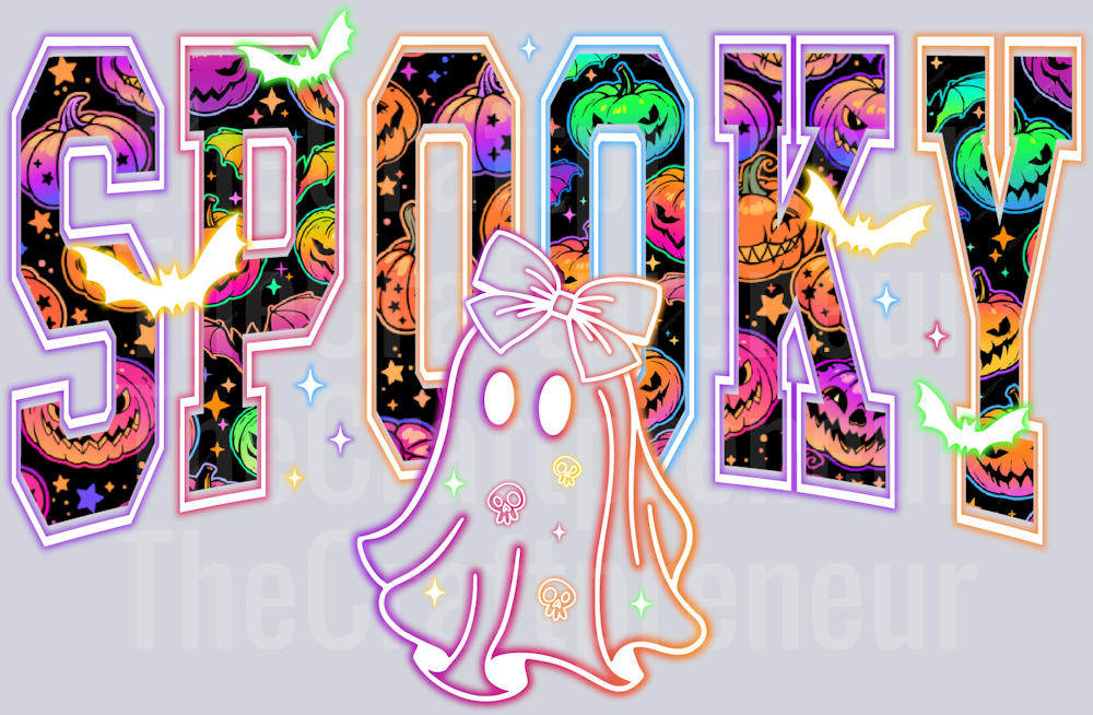 Spooky Ghost Neon Varsity DTF Transfer (Best on Black!)
